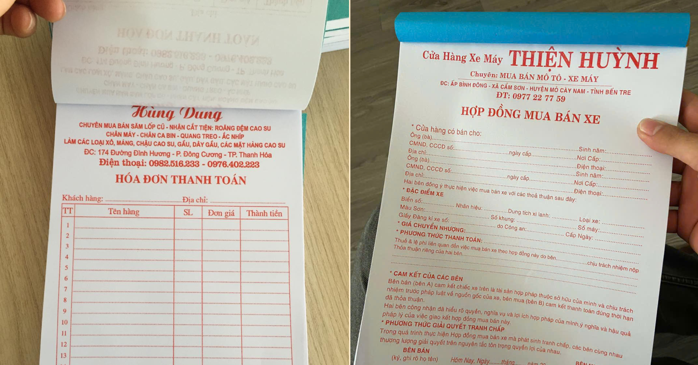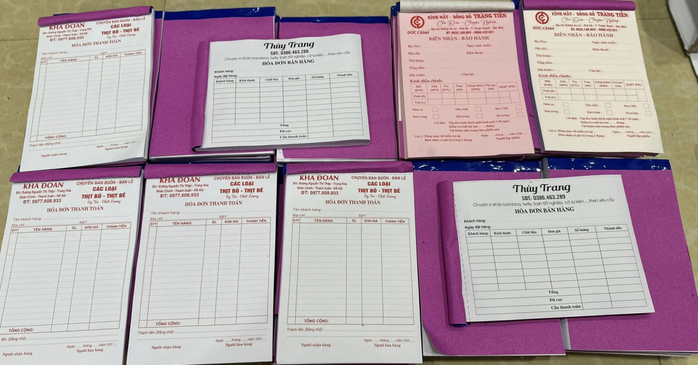 • Hóa đơn bán lẻ 2–3 liên (có giấy than hoặc carbonless)